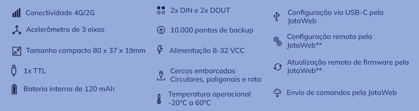 Através da JotaWeb, o cliente possui todo o histórico de configurações, atualizações, envios de comandos e logs dos dispositivos.