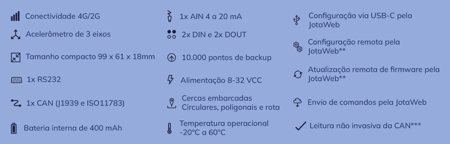 Através da JotaWeb, o cliente possui todo o histórico de configurações, atualizações, envios de comandos e logs dos dispositivos.